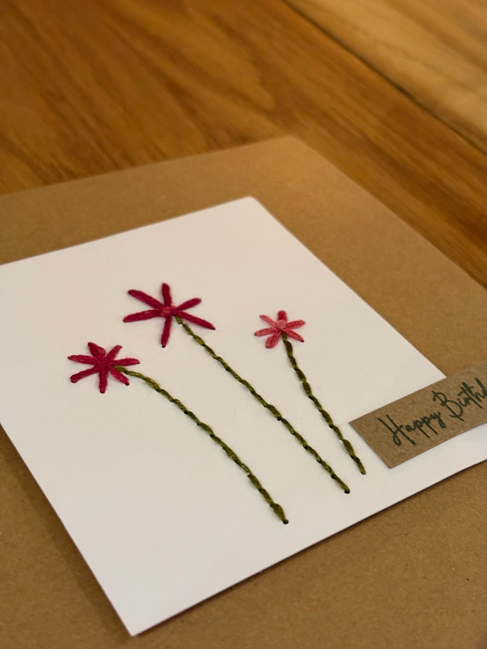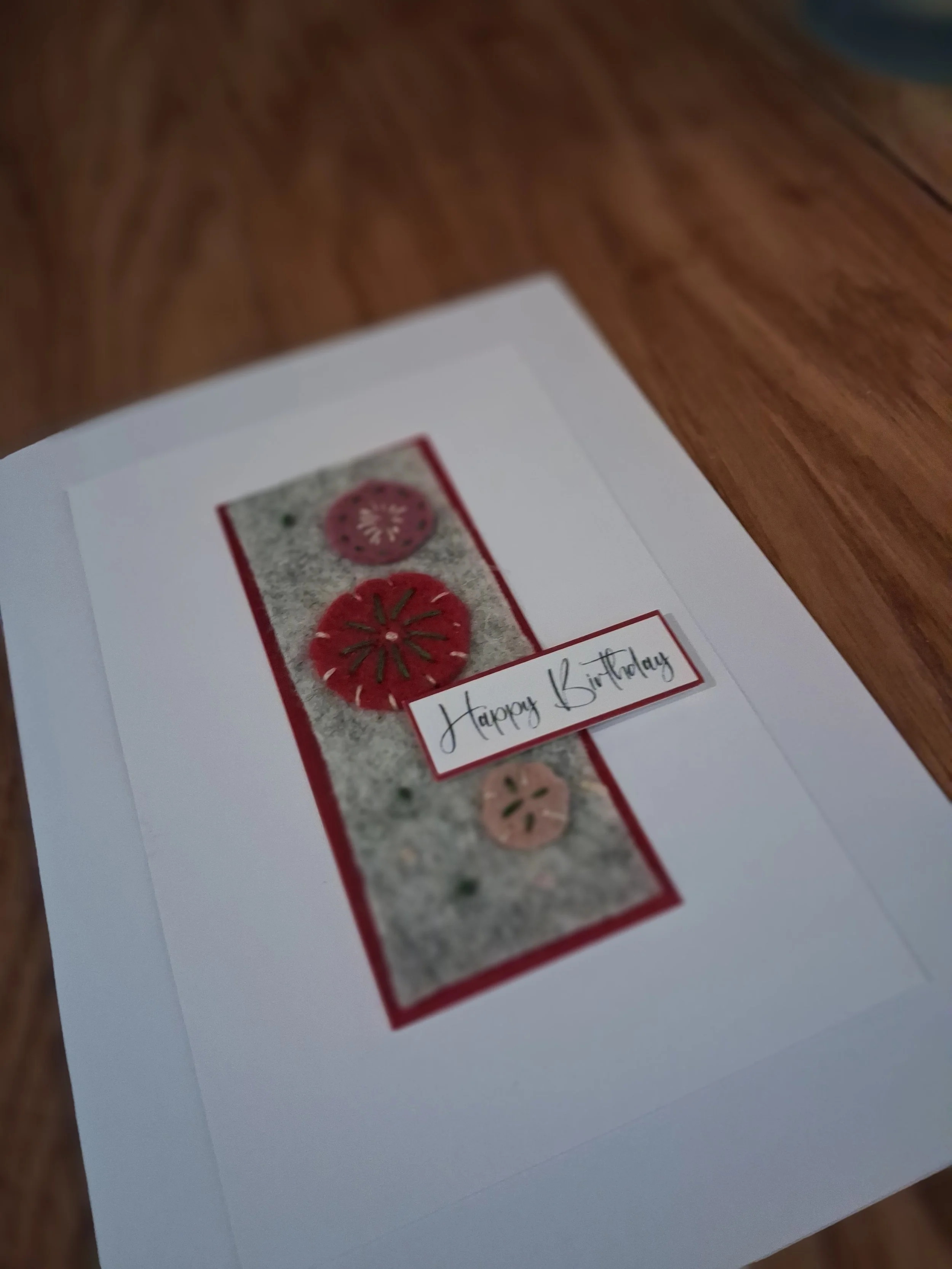 Beautiful birthday card hand stitched with pink felt and beads.